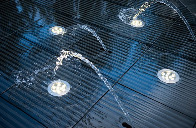 水本無形,它的物理特性讓它能輕易地跟隨容器而呈現(xiàn)不同的面貌。獨(dú)特的延展性使得水能呈現(xiàn)無以計數(shù)的不同效果。燈光的布置,介質(zhì)的紋理,顏色和動態(tài)都能給水帶來無窮的變化。